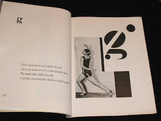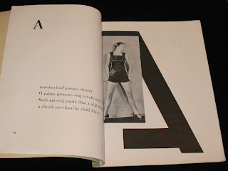 "The 1926 book Alphabet (Abeceda) is a landmark achievement in European modernism. Its frequent reproduction in exhibition catalogues and scholarly articles has made it a key symbol of Devetsil (1920-ca. 1931), the Czech artists' collective within whose ranks the book was conceived, and its importance is increasingly measured in international terms as well. The book consists of a series of rhymed quatrains by Devetsil poet Vitezslav Nezval, titled and ordered according to the letters of the Latin alphabet. Facing each set of verses is a Constructivist photomontage layout by Karel Teige, a painter turned typographer who was also Devetsil's spokesperson and leading theorist. Teige developed his graphic design around photographs of dancer and choreographer Milada (Milca) Mayerova, a recent affiliate of the group, who had performed a stage version of "Alphabet" to accompany a recitation of the poem at a theatrical evening in Nezval's honor in April 1926... The project to create a new alphabet epitomizes the proselytizing attitude of avant-gardists in various fields in the years after World War I. From Dada poetry to Constructivist architecture and design, from calls to overhaul theater to revolutions in literary theory, a panoply of experiments took the alphabet as their model or target and disclosed the potency of this elementary linguistic structure as a trope for creative renewal and social revolution. With its large print, childlike verses, and an instructional sequence that matches a single letter in text and image on every page spread, Alphabet presents itself as the class reader for that internationally sponsored course in universal reeducation." (Matthew S. Witkovsky, "Staging language: Milca Mayerova and the Czech book Alphabet").