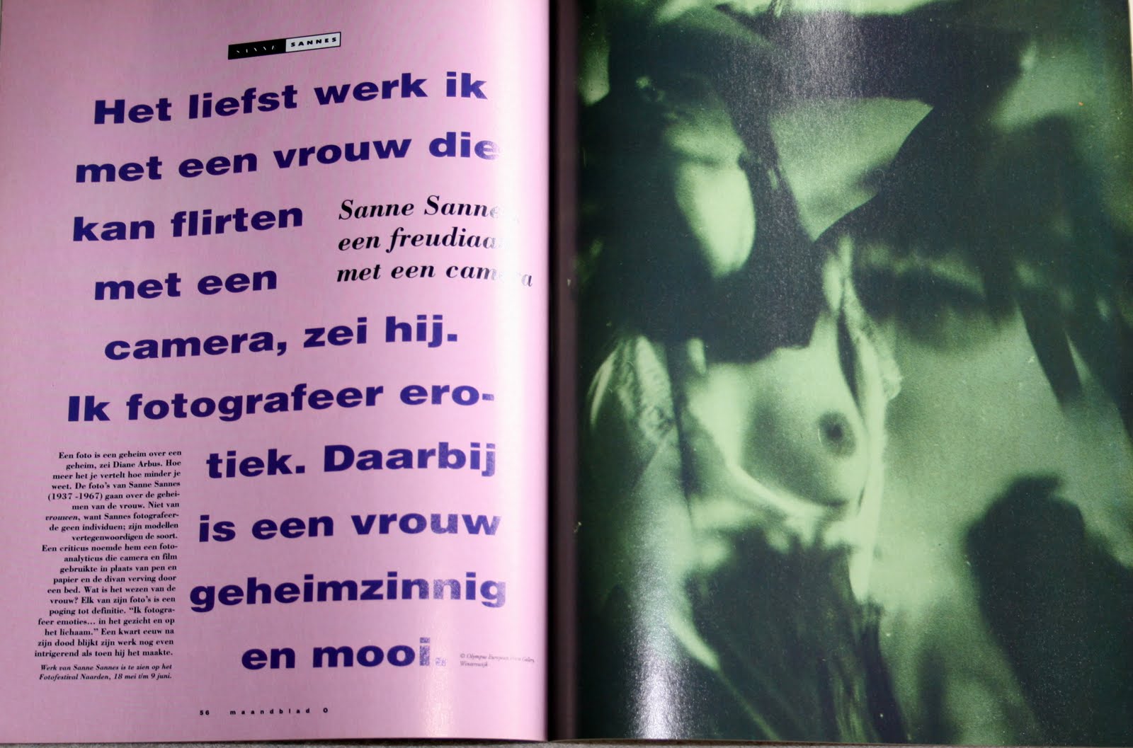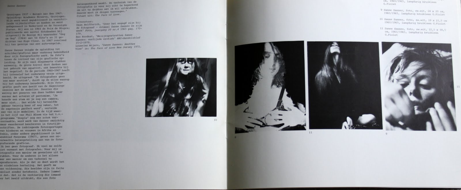 by N ... I've been looking at The Face of Love by Dutch photographer/late 60s cult-figure Sanne Sannes. Sannes described his approach like this: "There are many men who'll never see a woman in ecstasy. They change from one thing to something else completely different. Human emotions are my subject matter. I photograph people. They're what interest me, obsess me. I want to know what pushes them to do what they do. I don't look for them in the street; I don't do random photography. I direct them and record the moment they open up and become naked. I chose the most emotionally charged moments, the point of no return. I'm fanatically zealous!" Photographer Anna Beeke posed for Sannes and describes him as a "voyeur and provocateur, adding that he was like a boy who'd got old too soon and was never free of the obsessions that preoccupied him" Indeed, for many older men, there's a fine line between being sensual and becoming a pervert. Photographers, I believe, most often make this transgression. (And, may I add, it's not just with women.) If those quotes don't make you want to read the book, you might want to get your hormone levels checked. Sannes' innovative techniques make for some really amazing images. Read more about it in Paradis Magazine Issue #3 (page 277) & See for Dutch Books of Nudes Alessandro Bertolotti Sanne Sannes Anthon Beeke Ed van der Elsken Ginger Gordon Diana Blok Graphic Design Typography Photography ...