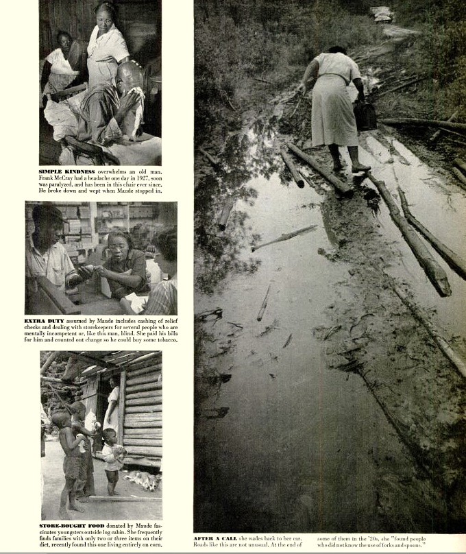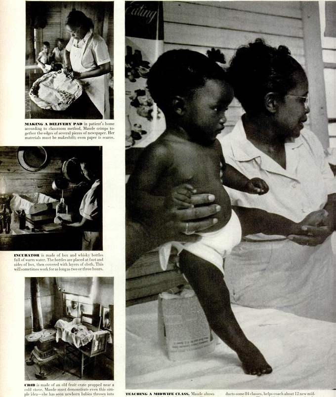 In 1951 Life Magazine was at it’s best and this issue had one of the best photographic essays ever by W. Eugene Smith. The 12 page story is titled "Nurse Midwife Maude Callen Eases Pain of Birth and Death" The story follows Maude and her work in Pineville, South Carolina (Berkley County) and takes you on "Maude’s 16-Hour Day" In 1951 "There are only nine trained Midwives in South Carolina and 300 in the nation" and Maude was one of the 20,000 common midwives practicing. This is a wonderful story with pictures of a way of life that has slipped by.