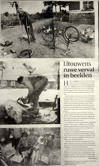 Revealingly, too, Viksraitis sometimes places himself at the centre of his work. Two of the more mysterious shots are staged tableaux: in the first, he stands naked, his back to the camera, balancing a huge metal bucket on his head; in the second, again naked, he walks in front of a long line of empty bottles. He seems to be saying, I am just like the people I photograph, even as he displays his physical difference. The camera, too, of course, makes him different, signals his detachment from the chaos and disorder around him. He grew up, he says, "between marshes and clay", and now he is an acute and graphic chronicler of that alluvial world, a world that seems to be sinking under the weight of its own sadness and despair.