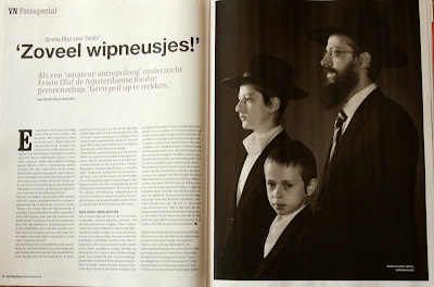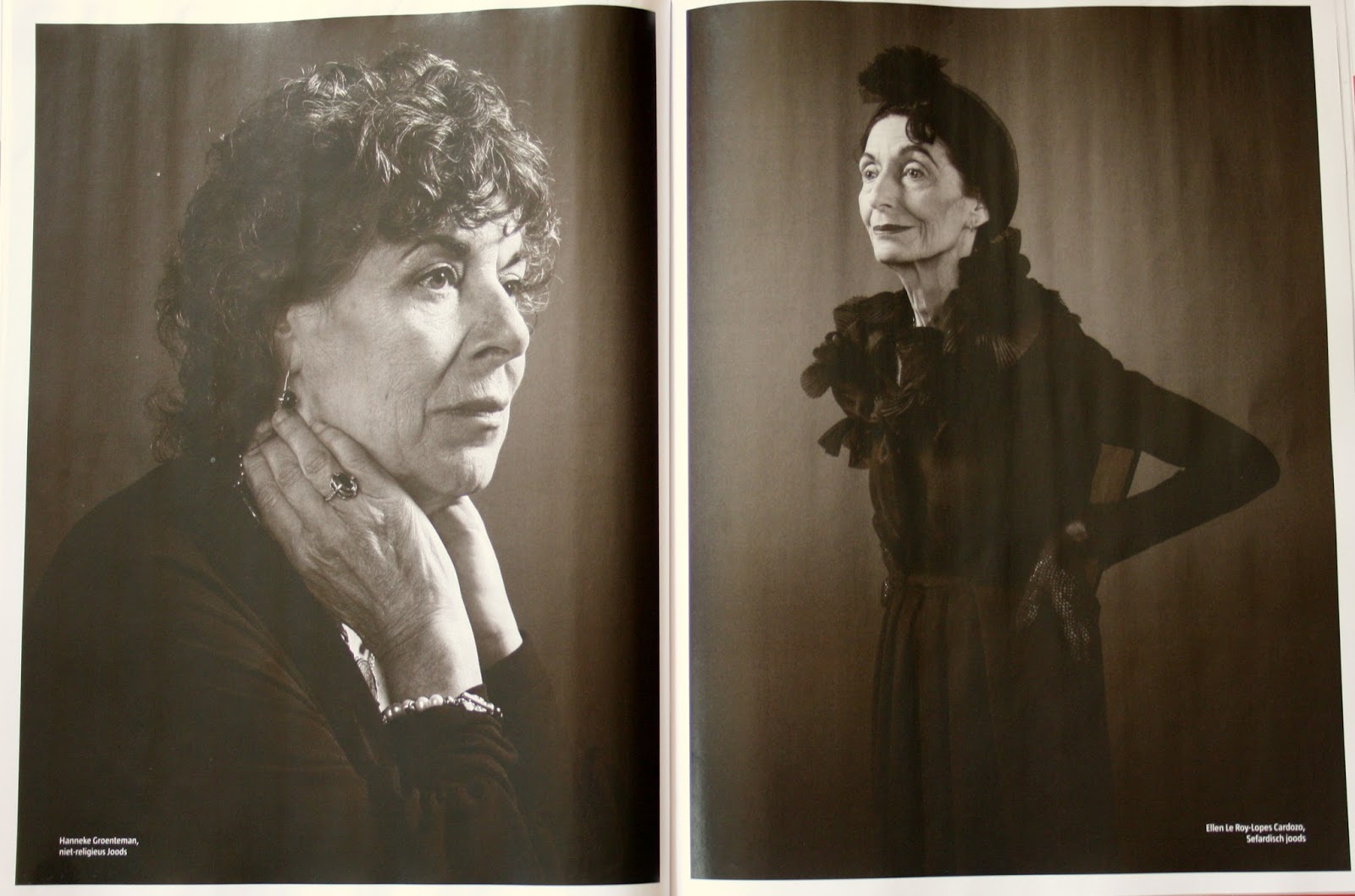 Olaf stelde zichzelf ten doel om een dwarsdoorsnede van de Amsterdamse Joodse gemeenschap vast te leggen. Dat bleek nogal een kluif. ‘Als fotograaf focus je het liefst op het religieuze, het zichtbare. Slechts tien of vijftien procent van de Joodse gemeenschap is religieus, heb ik me laten vertellen, dus dat kon niet.’ Andere moeilijkheid: ‘Soms is iemand niet religieus maar heeft wel de Joodse identiteit. Hanneke Groenteman zei: “Ik heb er niets mee maar ik ben het wel.” Wat is dat dan? Die discussie woedt ook binnen de gemeenschap. Ben je echt alleen Joods als je moeder dat is? Wie heeft dat eigenlijk verzonnen? Geen peil op te trekken. Het lijkt de gewone wereld wel.’