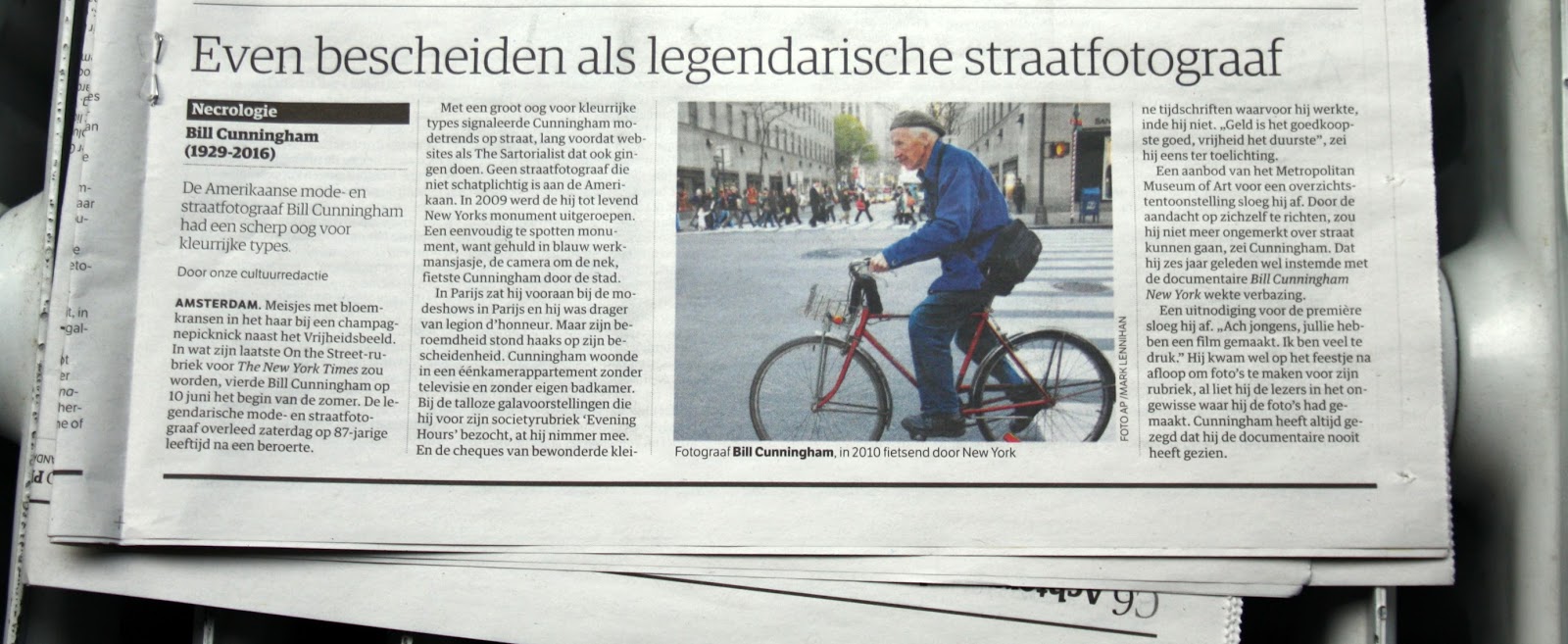 Met een groot oog voor kleurrijke types signaleerde Cunningham modetrends op straat, lang voordat websites als The Sartorialist dat ook gingen doen. Geen straatfotograaf die niet schatplichtig is aan de Amerikaan. In 2009 werd de hij tot levend New Yorks monument uitgeroepen. Een eenvoudig te spotten monument, want gehuld in blauw werkmansjasje, de camera om de nek, fietste Cunningham door de stad.